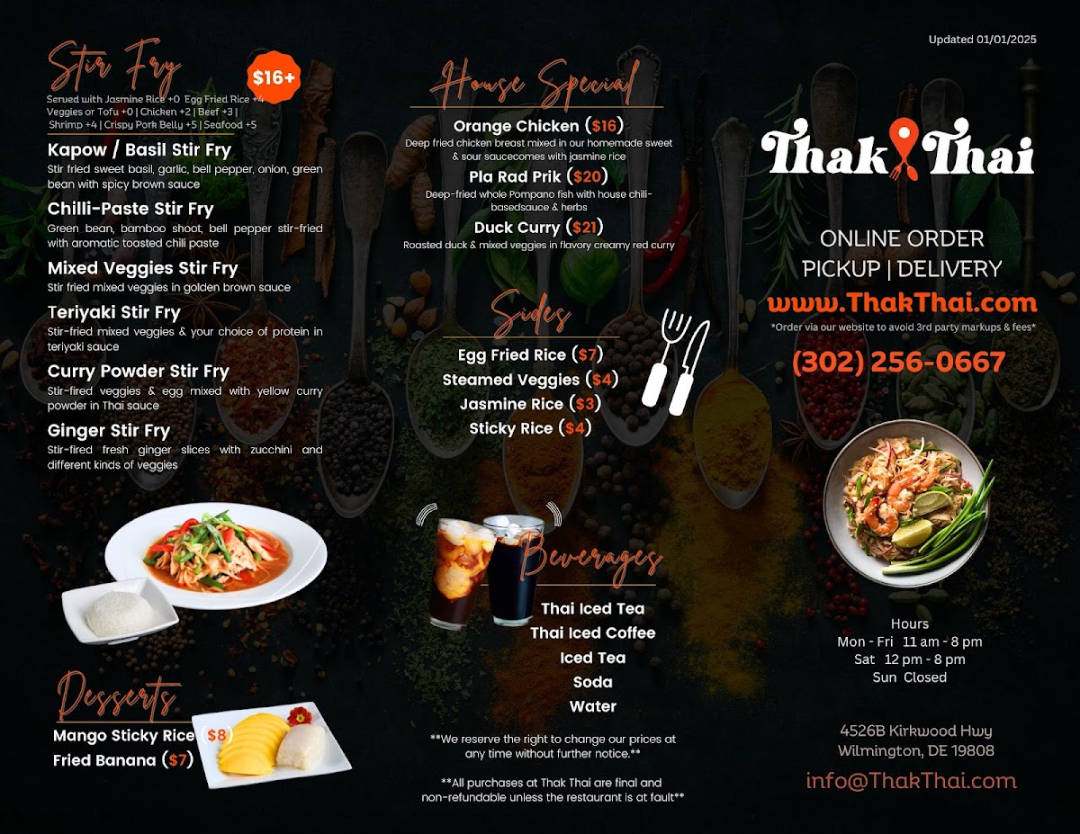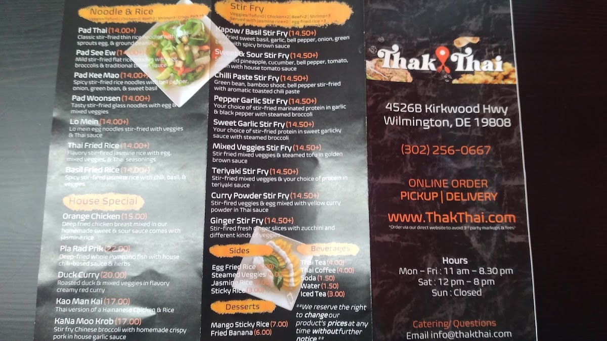 If you're craving authentic Thai flavors, Thak Thai Menu is the place to be. Located at 4526B Kirkwood Hwy, Wilmington, DE, this cozy spot offers a variety of dishes that will take your taste buds straight to Thailand. From fragrant curries to savory stir-fries, there's something to satisfy every palate. Whether you’re in the mood for a spicy noodle dish or a mild, comforting soup, you’ll find a wide range of options to choose from. The ingredients are fresh, and the flavors are bold, making each bite a memorable experience. Don't forget to try their house specialties, which feature the perfect balance of sweet, salty, sour, and spicy notes. The menu also includes a selection of appetizers, rice dishes, and vegetarian options, ensuring everyone can enjoy a delicious meal. Every dish is carefully crafted to offer a true taste of Thai cuisine, right here in Wilmington.